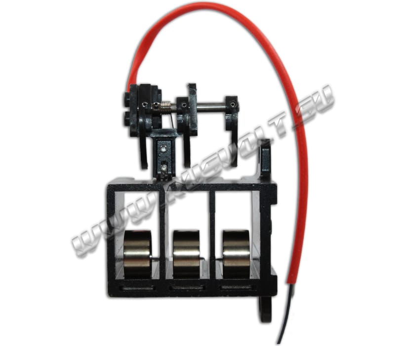 Щёткодержатель GH888-RV 3/20х40 состоит из трех обойм и трех нажимных устройств SC5RV 132x16,5-23,5x12, обеспечивающих прилегание щеток к блоку контактных колец с необходимым усилием. Так же в нем присутствует датчик износа электрощеток, благодаря которому можно вовремя понять когда пришло время поменять щетки. Давление на графитовую щетку CG626 20x40x100 передаётся при помощи рулонных пружин щеткодержателя. Сам щеткодержатель крепится на траверсу (бракет) и устанавливается на оси токосъемного кольца. Изготавливается под давлением из латуни с помощью фрезерной обработки путем протяжки, сверления и запиловки.