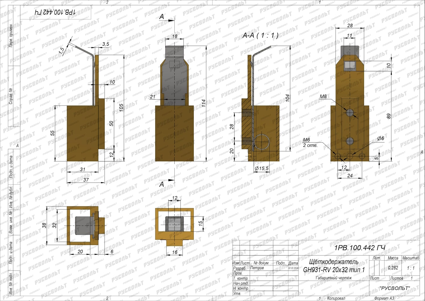 Щеткодержатель GH931-RV 20x32 (аналог GH931 Mersen - Carbone Lorraine) - чертеж 1РВ.100.442 ГЧ
