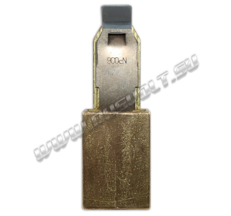 Щёткодержатель GH931-RV 20x32 (аналог GH931 Mersen - Carbone Lorraine) состоит из одной обоймы и нажимного устройства, обеспечивающего прилегание щеток к блоку контактных колец с необходимым усилием. Давление на графитовую щетку передаётся при помощи рулонной пружины щеткодержателя внутри которой установлен полиамидный ролик. Сам щеткодержатель крепится на траверсу (бракет) и устанавливается на оси токосъемного кольца. Изготавливается под давлением из латуни с помощью фрезерной обработки путем протяжки, сверления и запиловки.