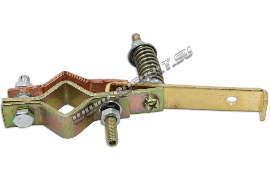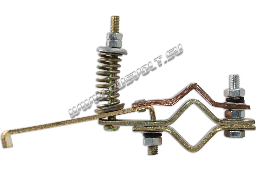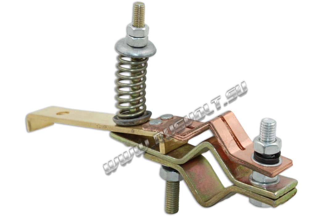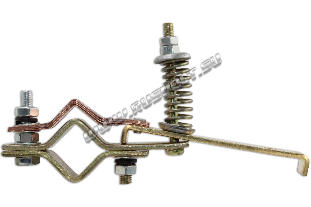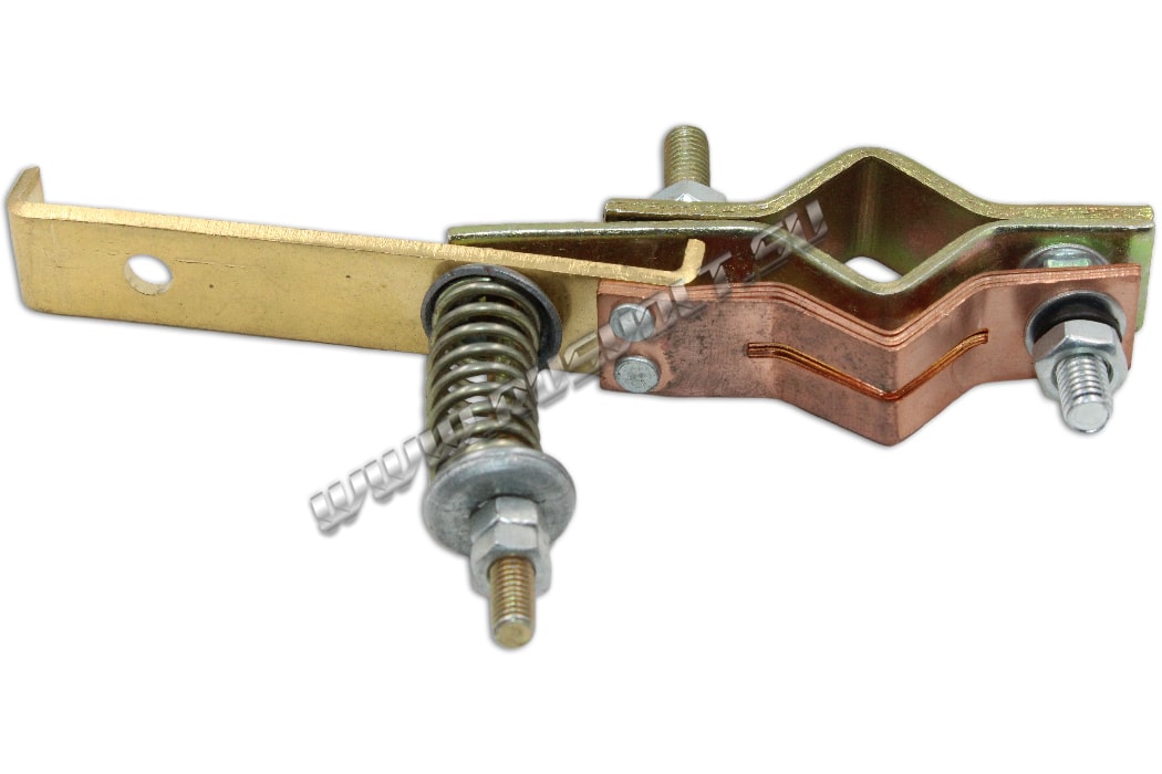 Щёткодержатели KRG-RV 16x30 используются в электрических машинах на блоках контактных колец и входят в состав узлов токосъема. Сделан методом гибки из листов латуни и меди. Состоит из одной обоймы для электрощетки размером 16x30 мм которая крепиться болтом, прижимного устройства из цилиндрической пружины растяжения и рычага. Усилие нажатия на графитовую щётку регулируется и передаётся при помощи пружины щеткодержателя и рычага. Сам щеткодержатель крепится на квадратный бракет (траверсу) и устанавливается на оси токосъемного кольца. Угол расположения обоймы для импортных электрощеток фиксированный.