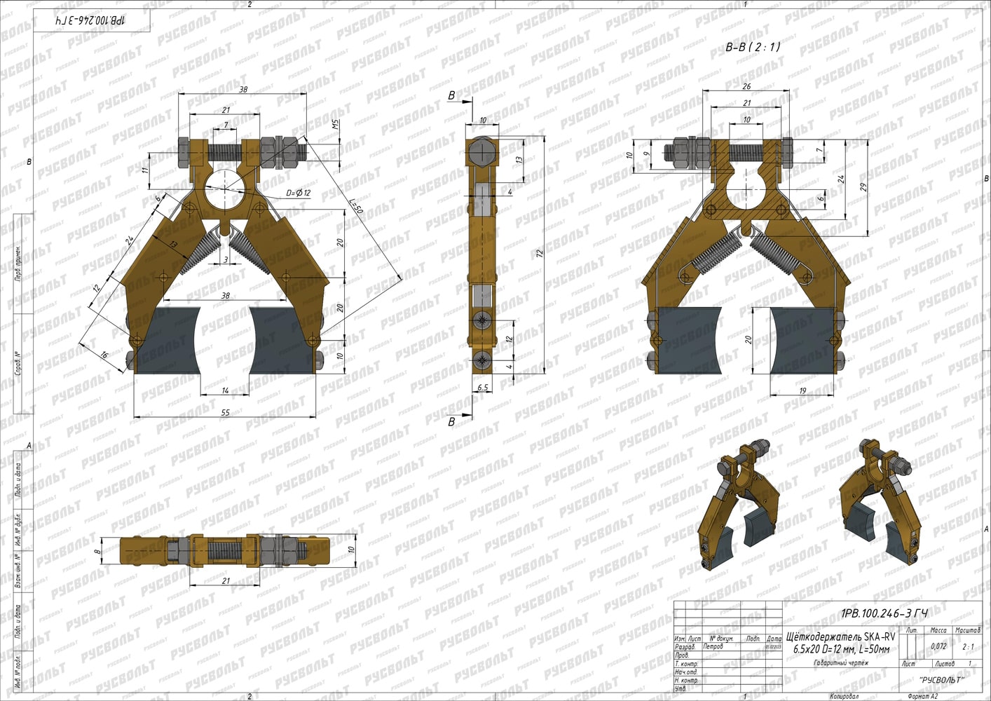 Щеткодержатель SKA-RV 6,5х20 d=12 мм, L=50 мм - тип 1 (аналог Schunk, Mersen, Carbone Lorraine, Siemens, Pantrac, Lampar, Rekofa) - чертеж 1РВ.100.246-3 ГЧ