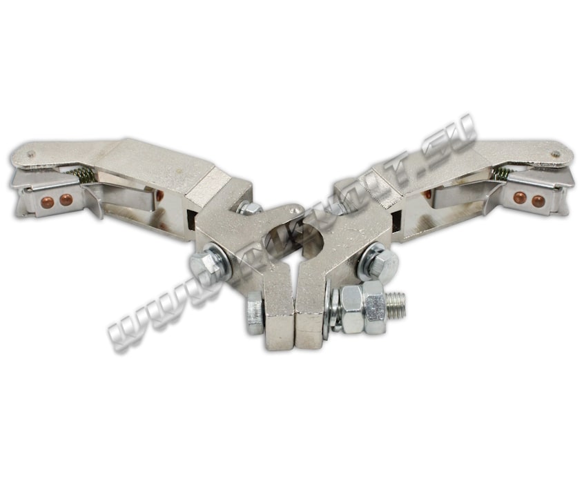 Щёткодержатели TIKZ 2f-RV 2/20х40 (возможный аналог TIKZ 2f 4020 2-20х40 Mersen (Carbon Lorraine)) используются в электрических машинах на блоках контактных колец в комплекте с щеткодержателями TILZf-RV и входят в состав узлов токосъема. Сделан методом литья из латуни и состоит из двух обойм для электрощеток размером 20х25 мм, прижимных устройств из двух цилиндрических пружин растяжения и изолированными наконечниками рычагов. Усилие нажатия на графитовые щётки не регулируется и передаётся при помощи пружин щеткодержателя и рычагов. Сам щеткодержатель состоит из центральной клеммы крепления и двух щеткодержателей TILZf-RV 20x40, крепится на круглый бракет (траверсу) и устанавливается на оси токосъемного кольца. Угол расположения обойм для электрощеток не регулируется и фиксируется при помощи болтов.