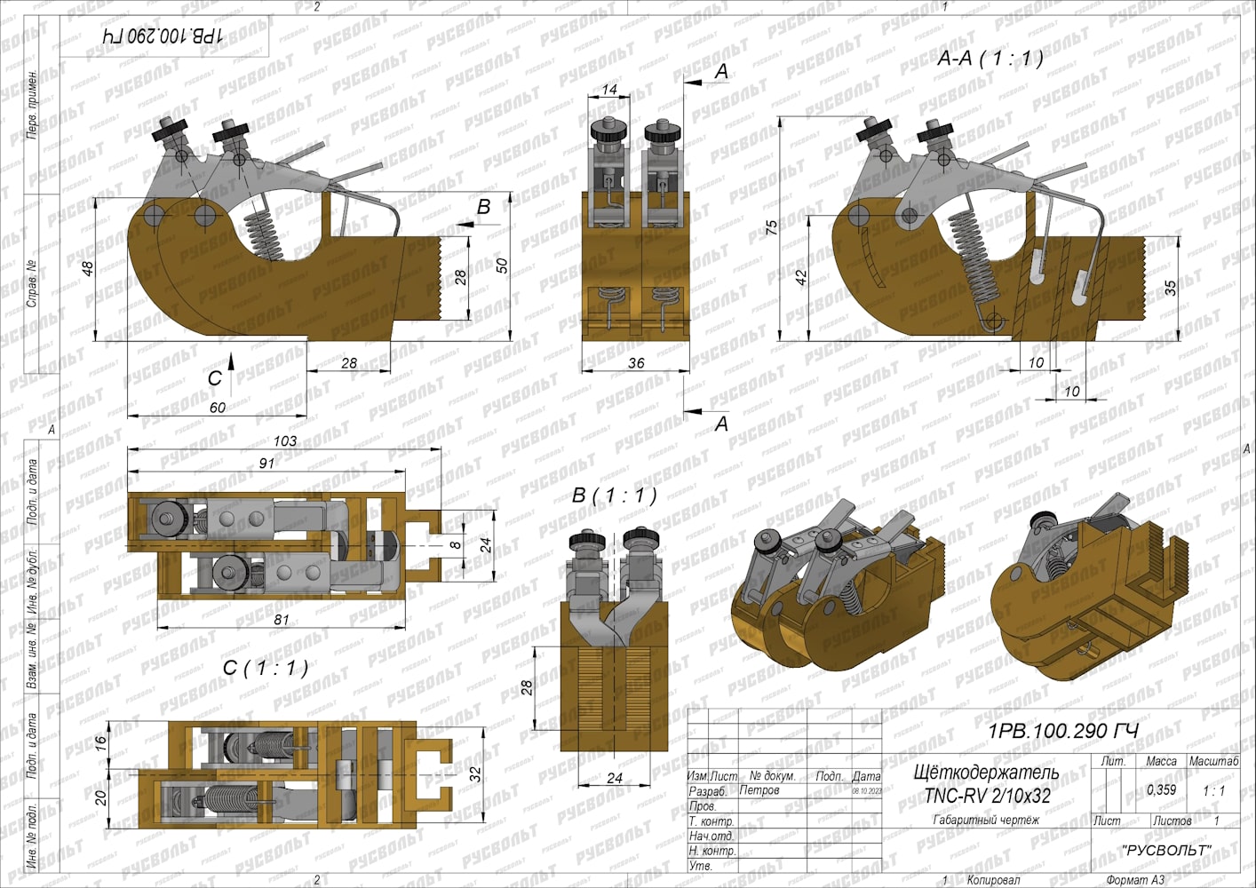 Щеткодержатель TNC-RV 2/10х32 (аналог Schunk, Mersen, Carbone Lorraine, Siemens, Pantrac, Lampar, Rekofa) - чертеж 1РВ.100.290 ГЧ