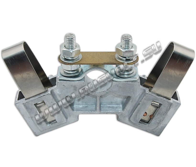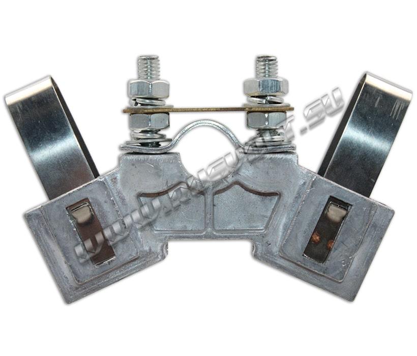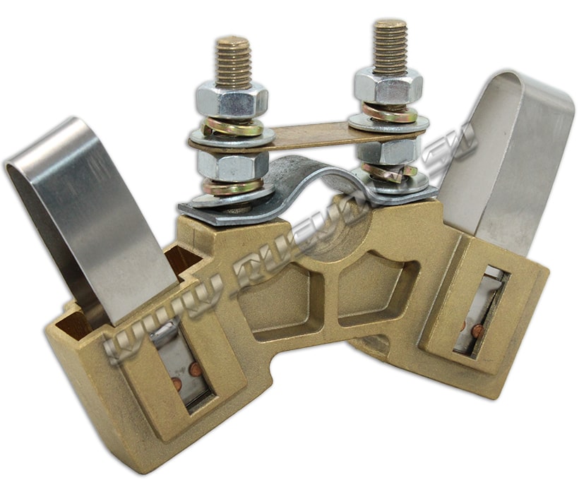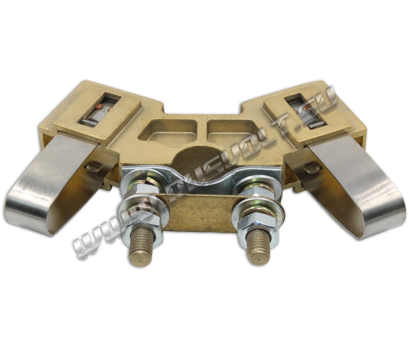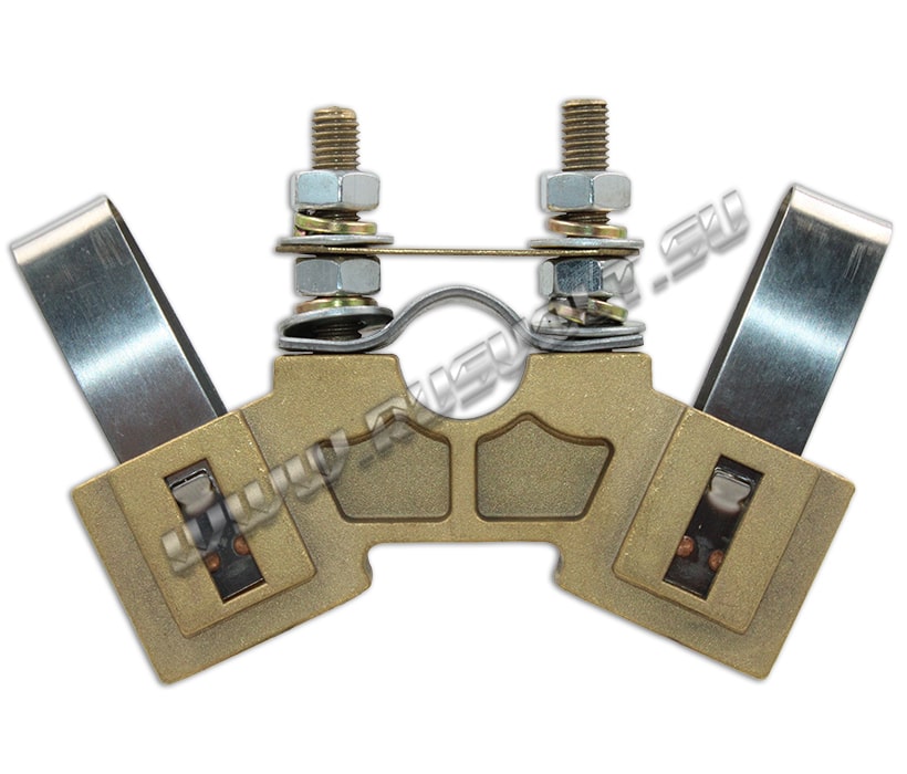 Крановый щеткодержатель типа HUA10 12,5х32 (YZR, YMZ) китайского производства используется в узлах токосъема для крановых электрических двигателей МТ, а конкретно в узле токосъема HUA10 12,5х32. Все его графитовые электрощетки расположены на самой окружности контактного кольца в электрическом двигателе. Давление пружины в щеткодержателе YMZ 12,5х32 не регулируется. Крепится он непосредственно на круглый палец (траверсу), а конкретно на бракет HUA10 12,5х32. Щеткодержатели данного типа чаще всего изготавливают из силумина, но возможен так же и вариант изготовления из латуни. Китайский крановый щеткодержатель HUA10 12,5*32 (YMZ, YZR) подвижный и в нем встроены две спиральные пружины рулонного (часового) типа - прижимные механизмы HUA10 12,5х32.