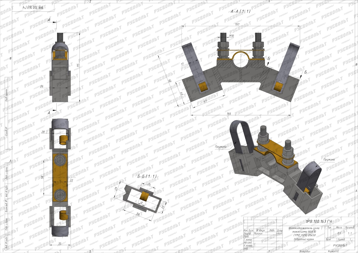 Крановый щеткодержатель HUA10 (YZR, YMZ) 20х50 - чертеж 1РВ.100.163 ГЧ