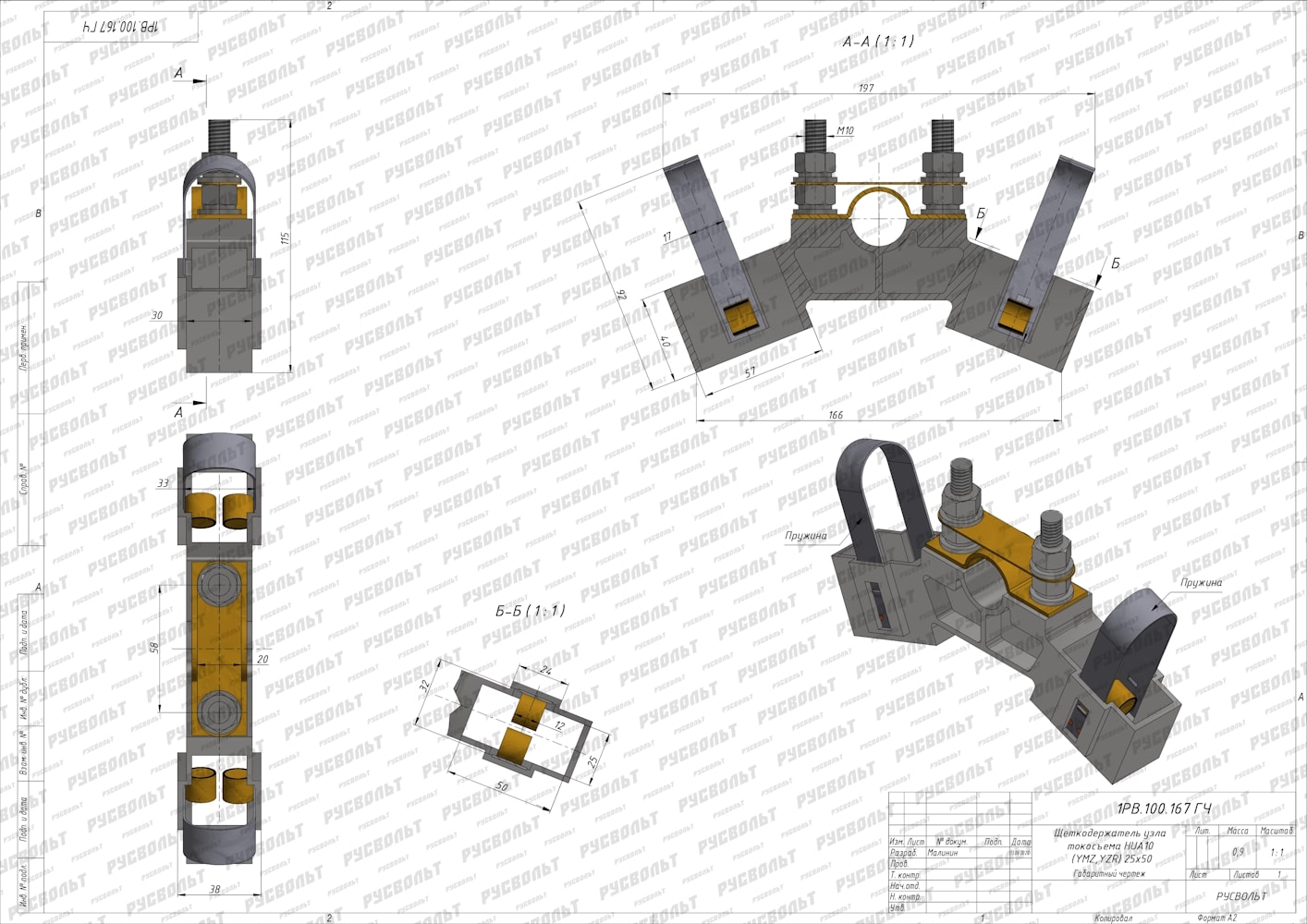 Крановый щеткодержатель HUA10 (YZR, YMZ) 25х50 - чертеж 1РВ.100.167 ГЧ