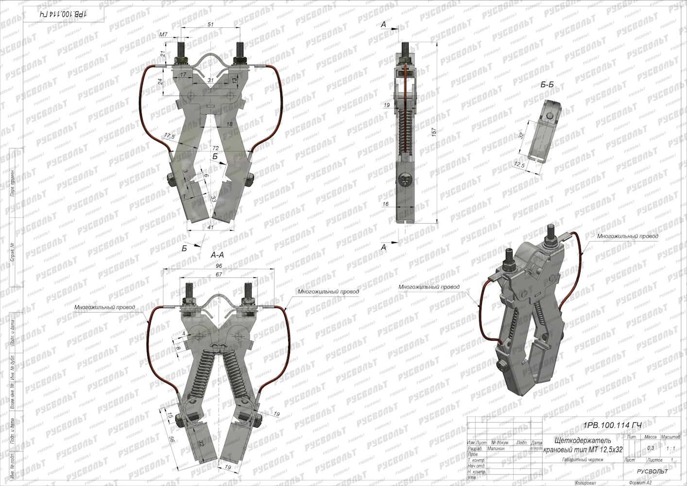 Щеткодержатель типа МТ 12,5х32 - чертеж 1РВ.100.114 ГЧ