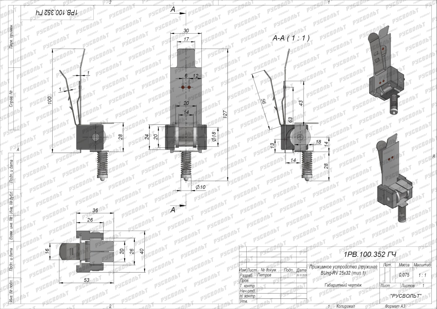 Характеристики пружины для щеткодержателя BUng-RV 25x32 - чертеж 1РВ.100.352 ГЧ