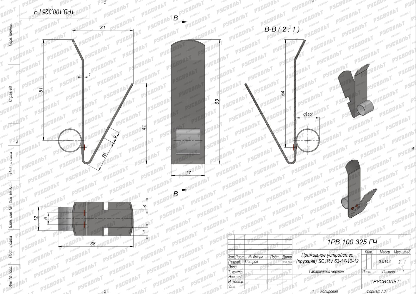 Характеристики пружины для щеткодержателя SC1RV 63*17-12*12 - чертеж 1РВ.100.325 ГЧ