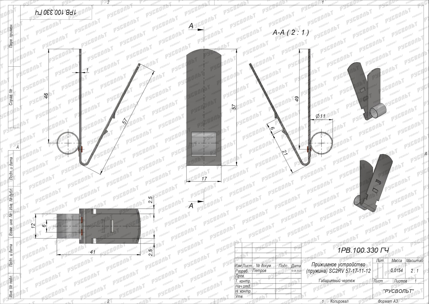 Характеристики пружины для щеткодержателя SC2RV 57*17-11*12 - чертеж 1РВ.100.330 ГЧ