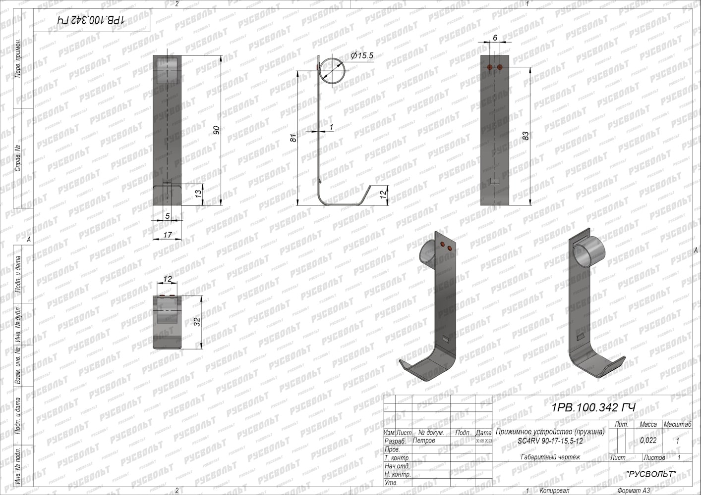 Пружина щеткодержателя SC4RV 90x17-15,5x12 - тип 1 (для GH-RV 25х32) - чертеж 1РВ.100.342 ГЧ