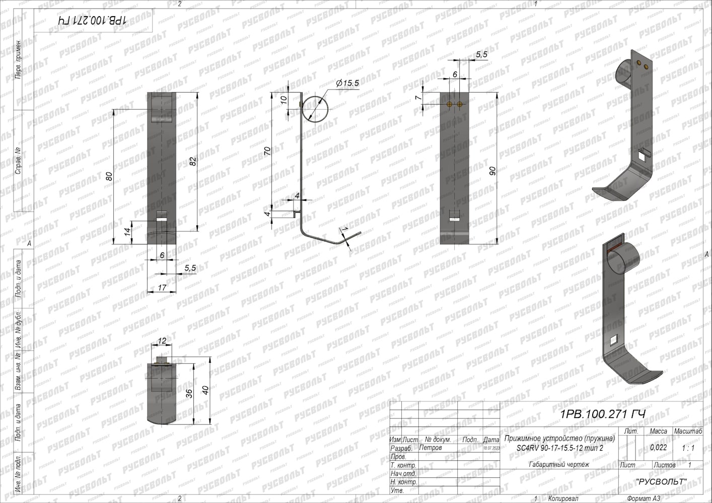 Пружина щеткодержателя SC4RV 90x17-15,5x12 - тип 2 (для GH-RV 25х32) - чертеж 1РВ.100.271 ГЧ