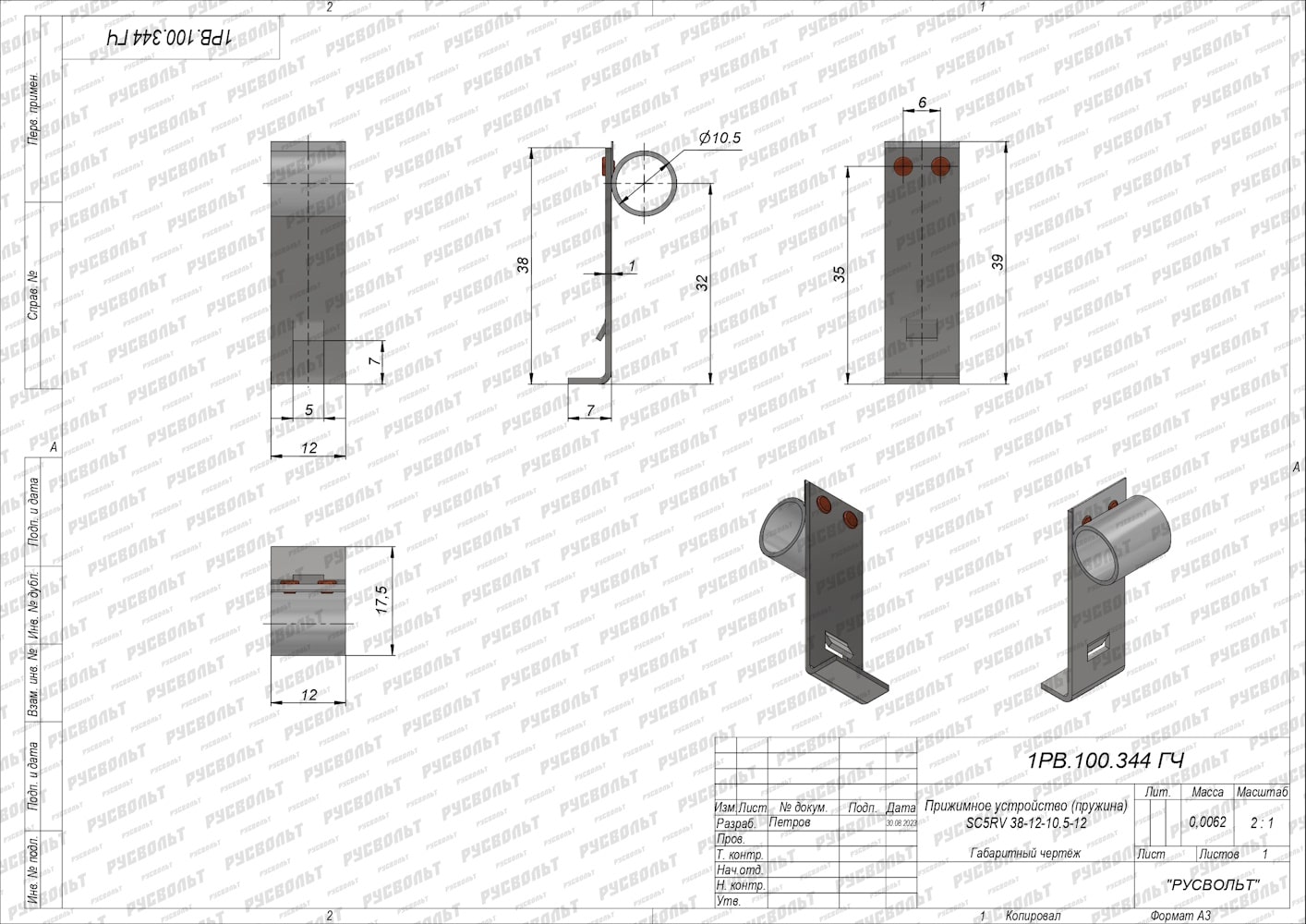 Характеристики пружины для щеткодержателя SC5RV 38*12-10,5*12 - чертеж 1РВ.100.344 ГЧ