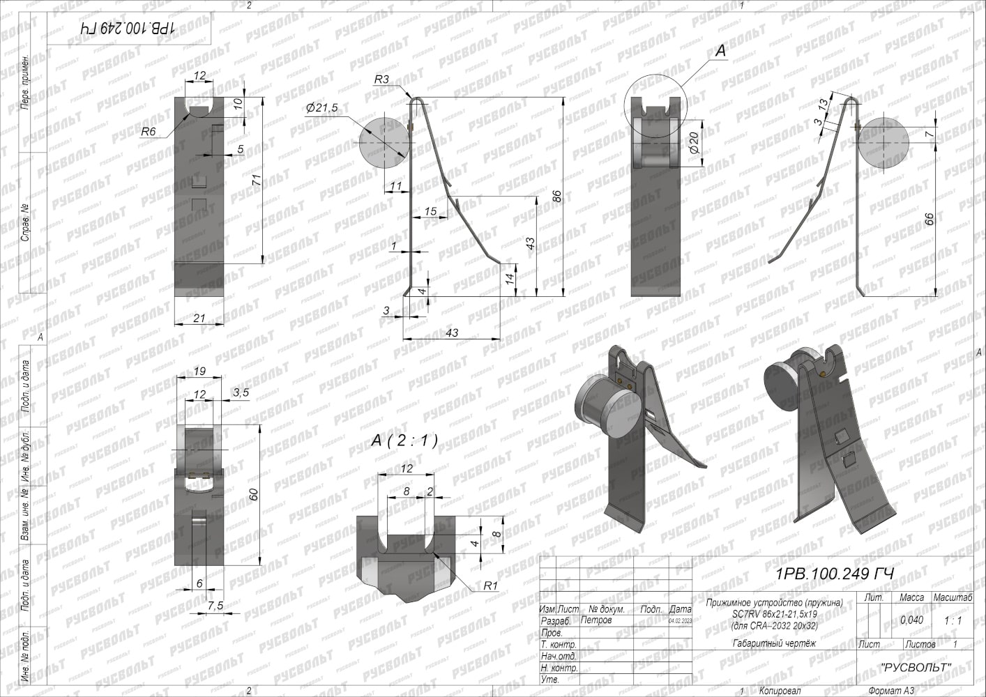 Характеристики пружины для щеткодержателя SC7RV 86*21-21,5*19 - чертеж 1РВ.100.249 ГЧ