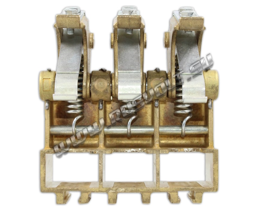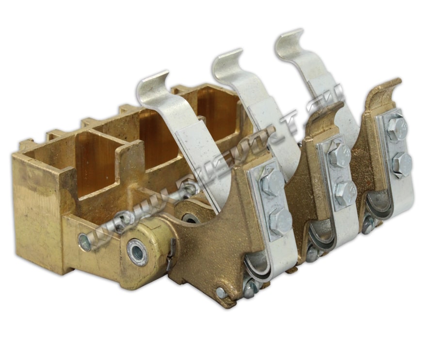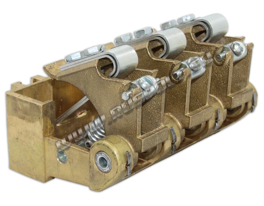 Щёткодержатель ЭДП-600 3/25х40 со специальной нажимной цилиндрической пружиной растяжения, радиальный, с разъемом для трех щеток используется в качестве альтернативной замены щеткодержателям РТП 3/25x40 с рулонными пружинами. Давление пружин на графитовые щётки которые в свою очередь прилегают к токосъемным кольцам регулируется и передаётся с помощью трех рычагов. Щеткодержатель крепится на палец (бракет). Изготавливается под давлением из латуни с помощью фрезерной обработки путем протяжки, сверления и запиловки. Данные щеткодержатели используются в составе узлов токосъема двигателей ЭДП600 и ЭДП800.