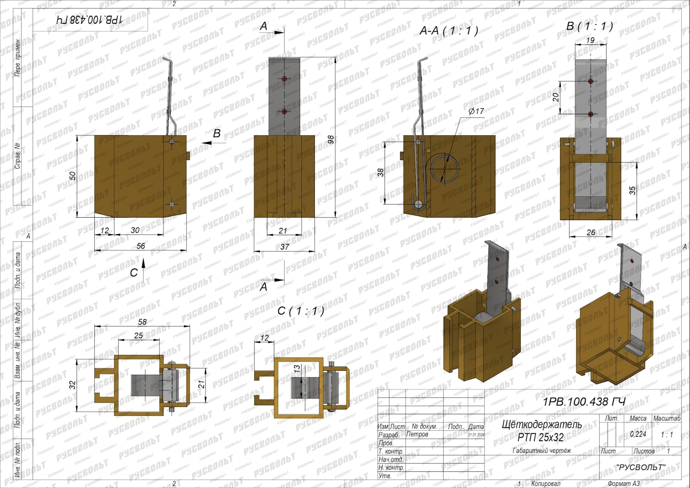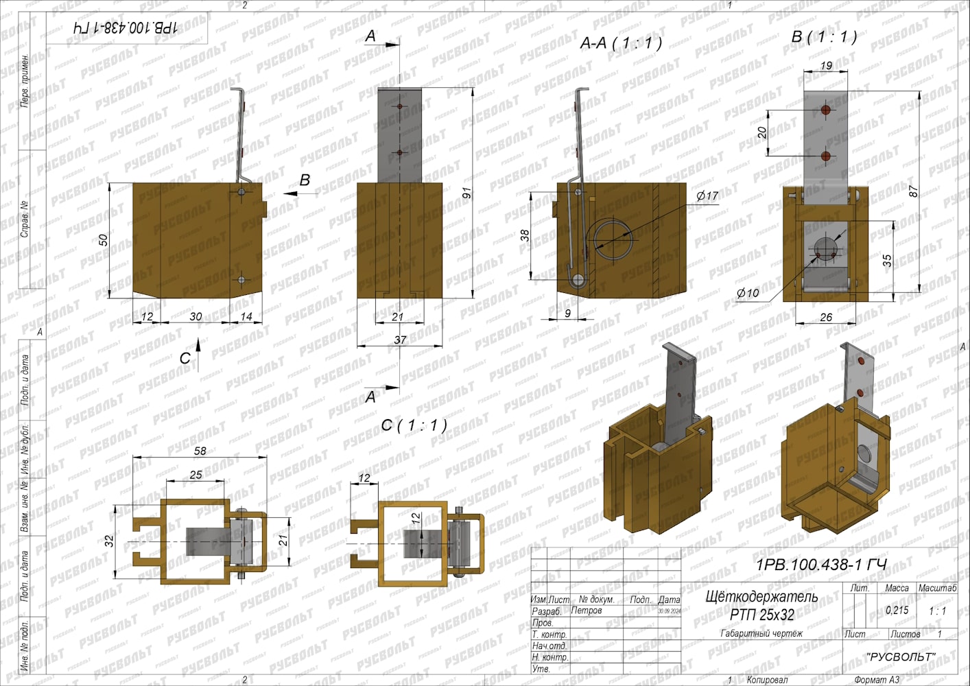 Щеткодержатель РТП 25*32 - чертеж 1РВ.100.438 ГЧ