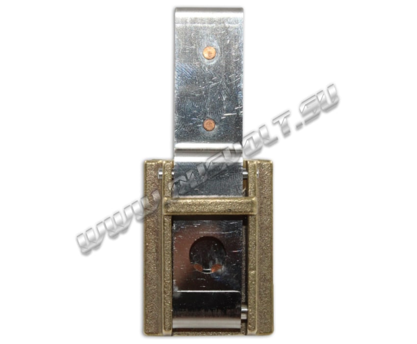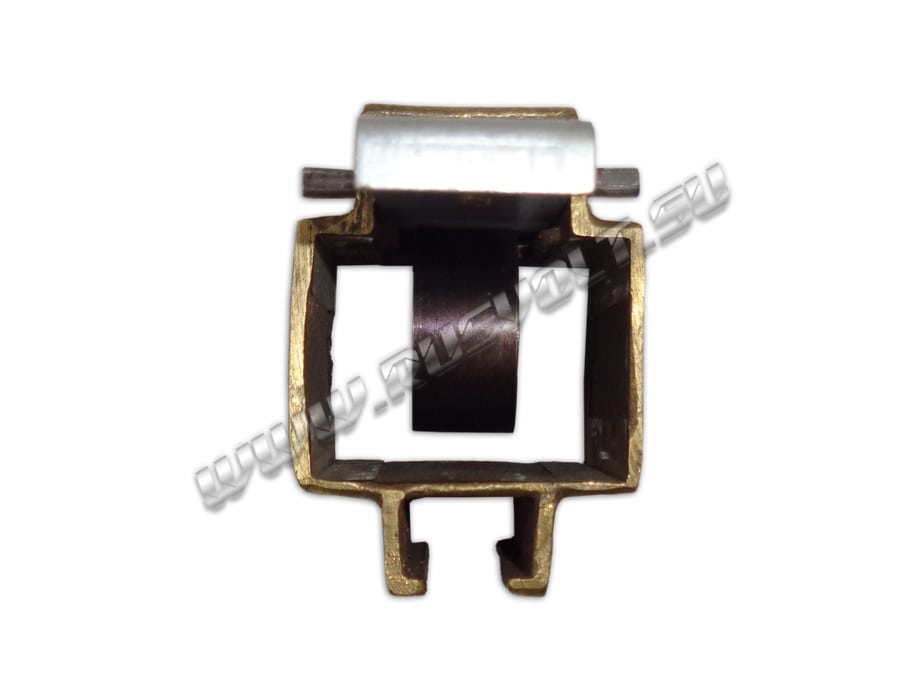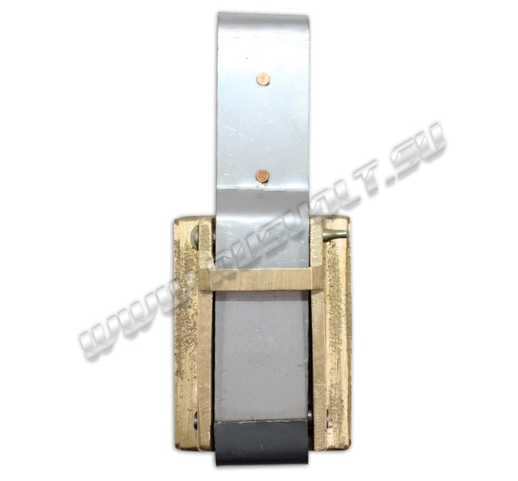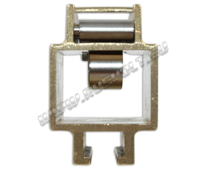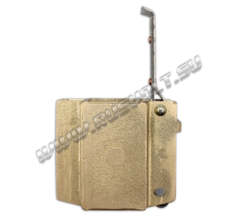 Щёткодержатель РТП 25х32 чертеж 5БС.112.140-03 или ЭКАР.301541.057 с рулонной пружиной (спиральной) часового типа, радиальный, с разъемом для одной щётки. Давление на щетку передается непосредственно через прижимной механизм РТП и не регулируется. Изготавливается под давлением из латуни с помощью фрезерной обработки путем протяжки, сверления и запиловки. В данных щеткодержателях применяются электрощетки размером 25х32х64мм.