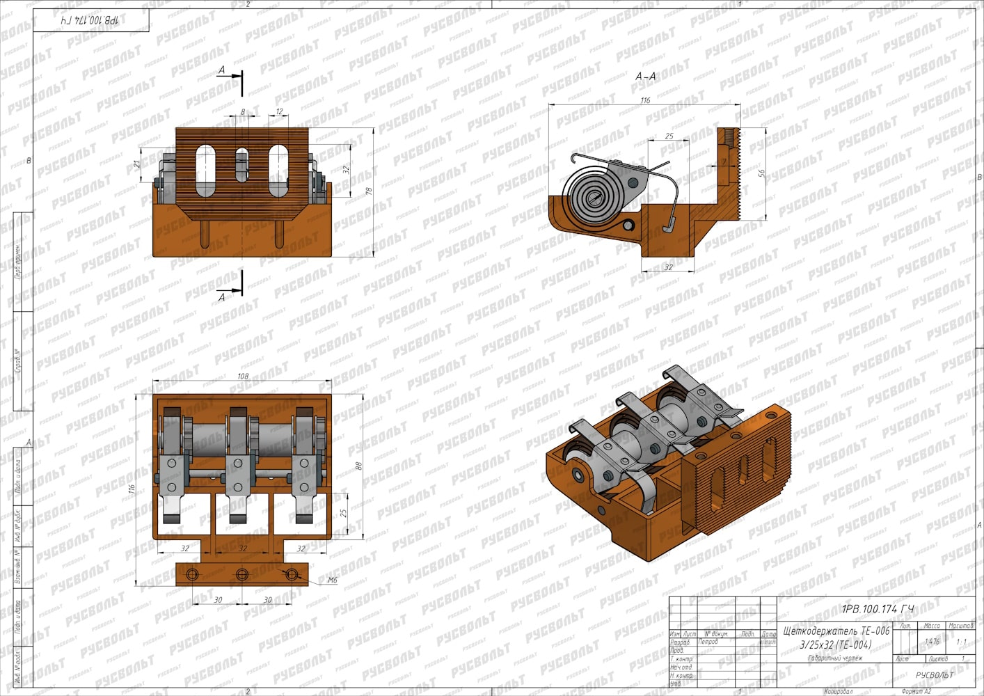 Щеткодержатель ТЕ006 3/25*32 - чертеж 1РВ.100.174 ГЧ