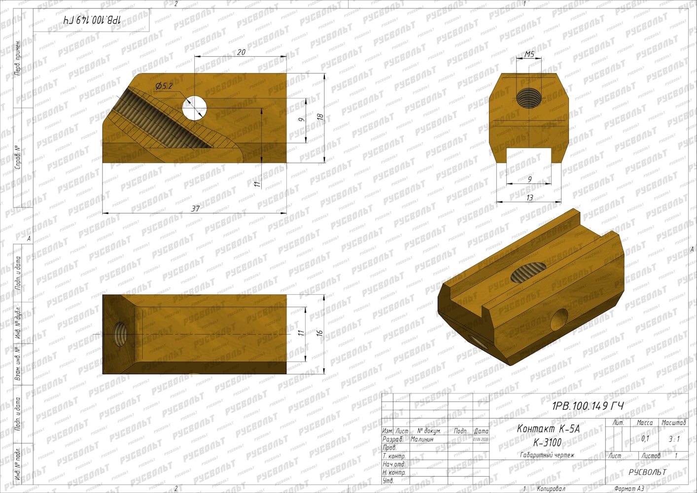 Возможные обозначения и чертежи щеткодержателя типа К3100 (К5А) вполне могут выглядеть следующим образом:
