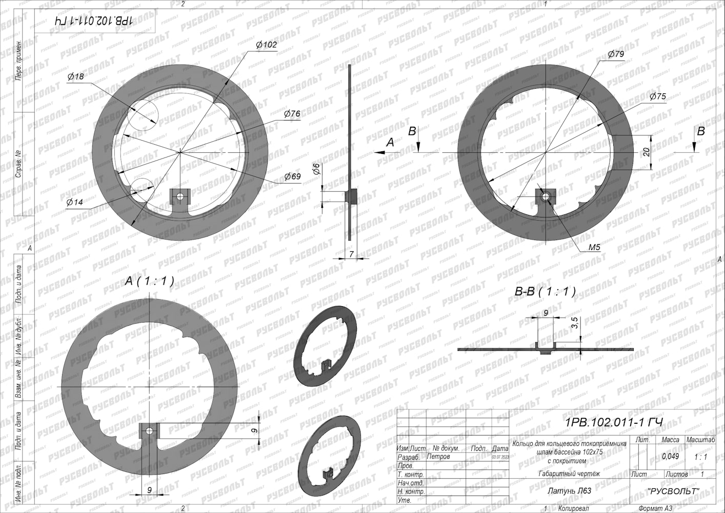 Токосъемное контактное кольцо SHB 102x75 (латунь) - чертеж 1РВ.102.011 ГЧ