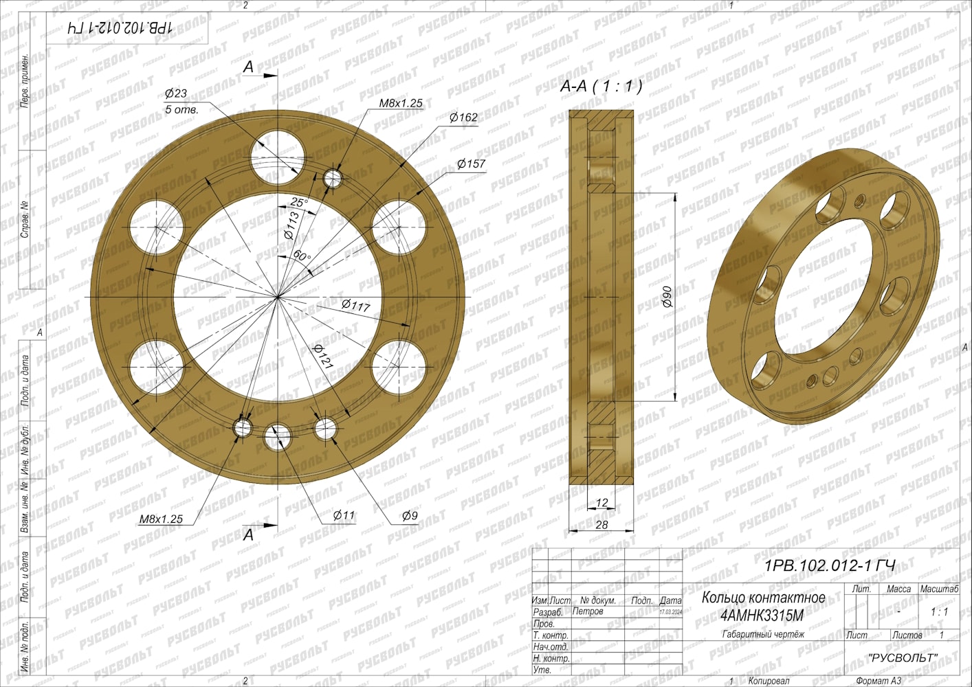 Токосъемное контактное кольцо 4АМНК-315М латунь - чертеж 1РВ.102.012-1 ГЧ