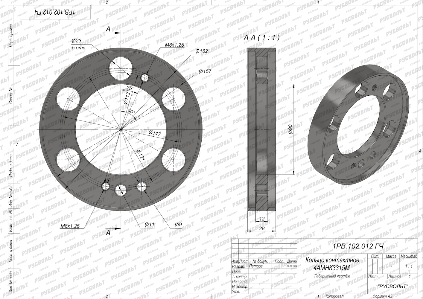 Токосъемное контактное кольцо 4АМНК-315М сталь - чертеж 1РВ.102.012 ГЧ