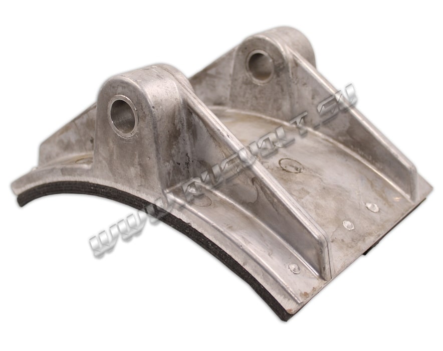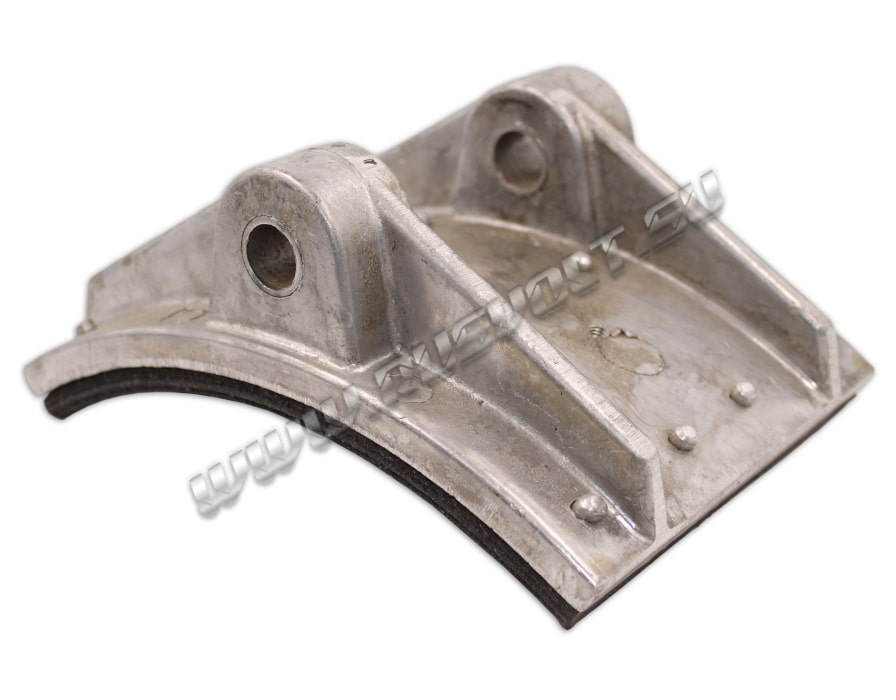 Тормозная колодка для крановых тормозов типов ТКГ-160, ТКГ-200, ТКГ-300, ТКГ-400 и ТКГ-500 необходима для остановки и удержания шкивов в колодочном крановом тормозе ТКГ в заторможенном состоянии, если привод не функционирует. Она изготовлена из чугунного сплава либо силумина и поставляется с уже набитой накладкой - тормозной лентой марки ЭМ-1. Длина и ширина данной тормозной ленты для колодки должна покрывать всю площадь тормозной колодки, на которой она крепится. Заклепка обязательно должна быть утоплена в саму накладку минимум на 4мм. Накладки для колодок ТКГ крепятся к ней методом клепки на медные или алюминиевые заклепки либо проволоку из алюминия диаметром 1мм. Тормозные накладки подлежат регулярной замене вследствие своего износа и они могут быть как сплошными так и состоять из двух одинаковых половинок, что ни как не влияет на работу самой колодки. Колодки - это деталь кранового тормоза чаще всего подвергающаяся износу. Все тормозные колодки ТКГ, ТКТГ, ТКП и ТКТ меняются исключительно парами.