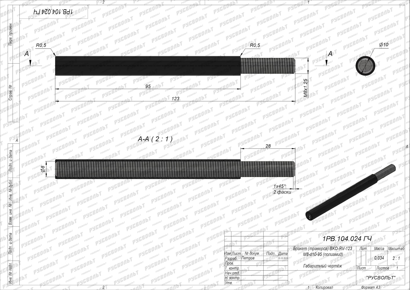 Бракет (траверса) BKO-RV-123 М8-d10-95 (полиамид) - чертеж 1РВ.104.024 ГЧ