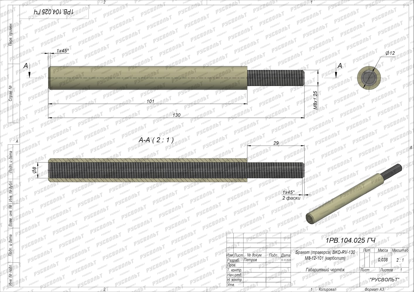 Бракет (траверса) BKO-RV-130 M8-12-101 (карболит) - чертеж 1РВ.104.025 ГЧ