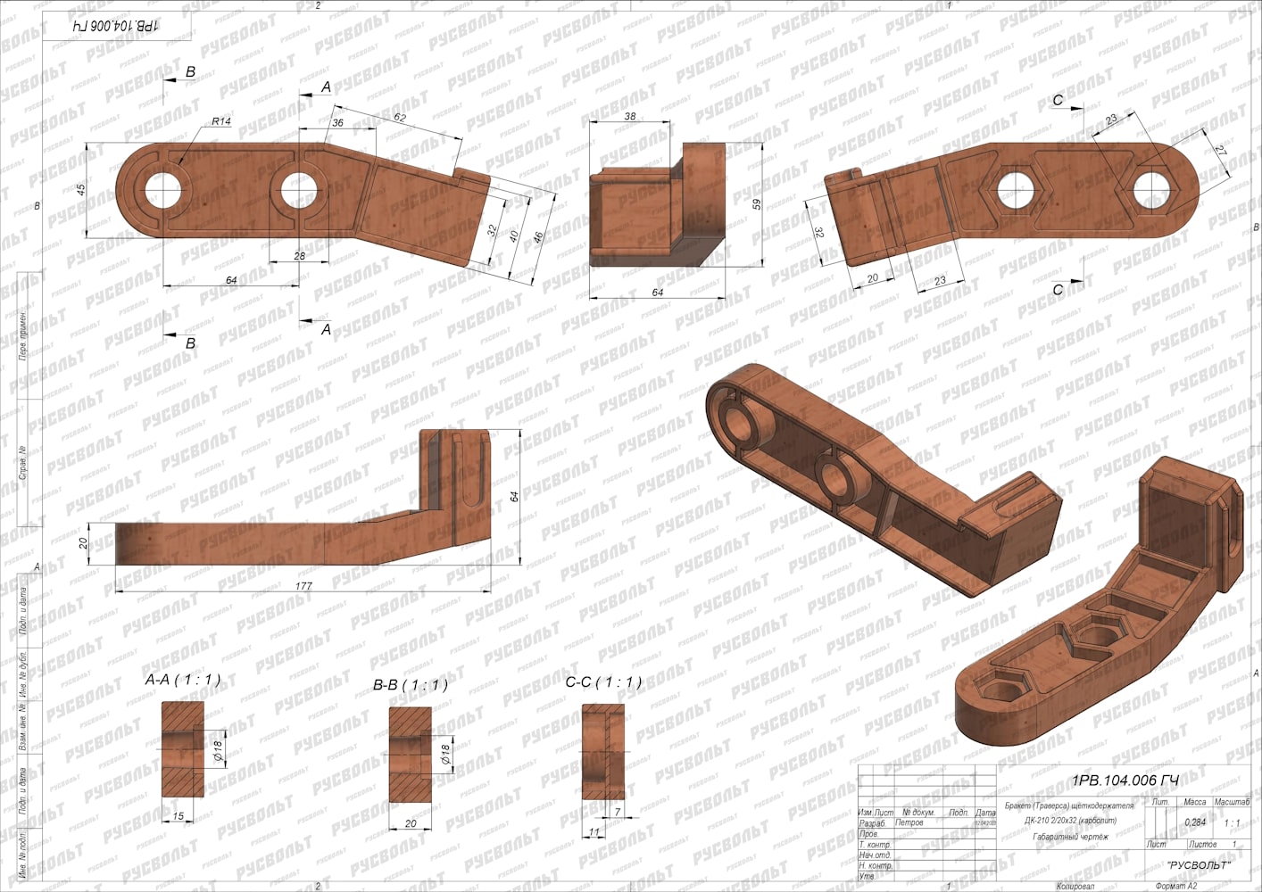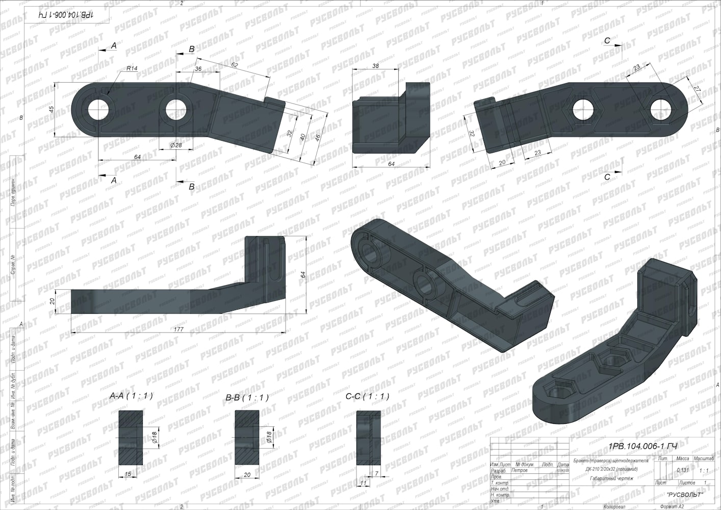 Возможные обозначения и чертежи бракета ДК-210 могут выглядеть следующим образом: