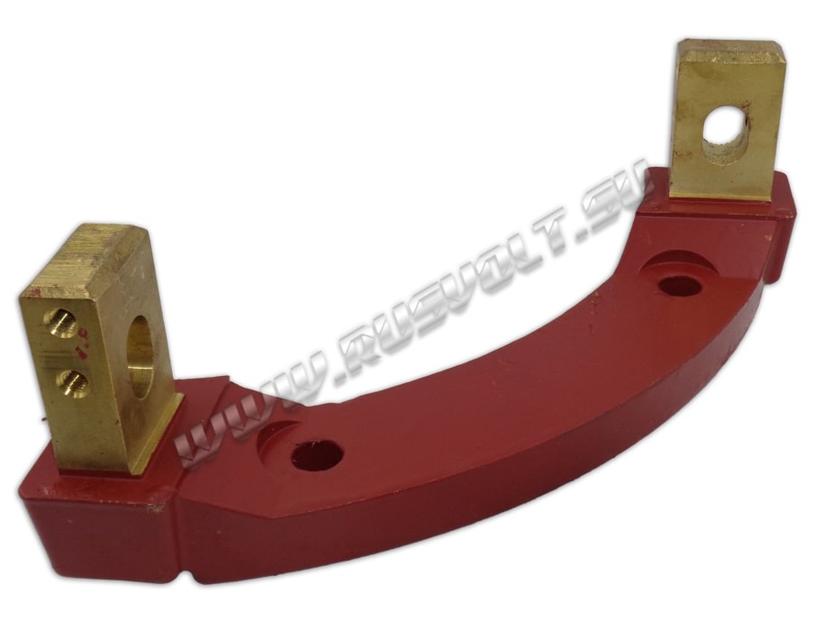 Бракет ЭК-590 25х40 (палец или траверса) изготавливается из стали, на него крепятся три изолятора, по одному для каждого из щеткодержателей и все это фиксируется четвертым изолятором и гайкой с шайбой. Он входит в состав узла токосъема и применяется в электродвигателях марки ЭК-590.