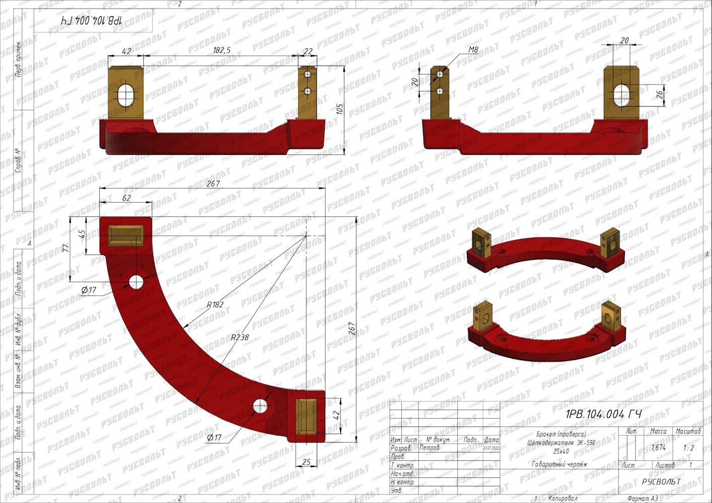Бракет ЭК590 25*40 - чертеж 1РВ.104.004 ГЧ