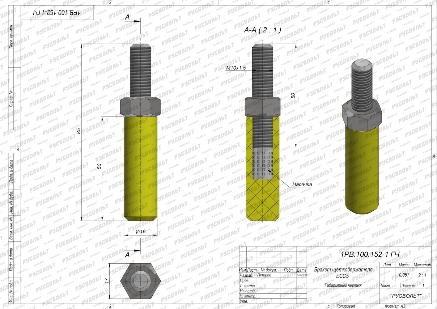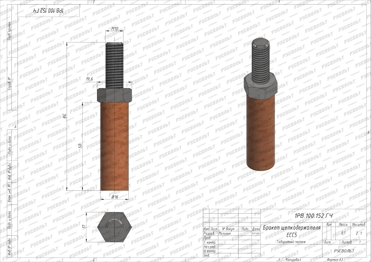 Бракет (траверса) для щеткодержателей ЕСС5 - чертеж 1РВ.100.152-1 ГЧ