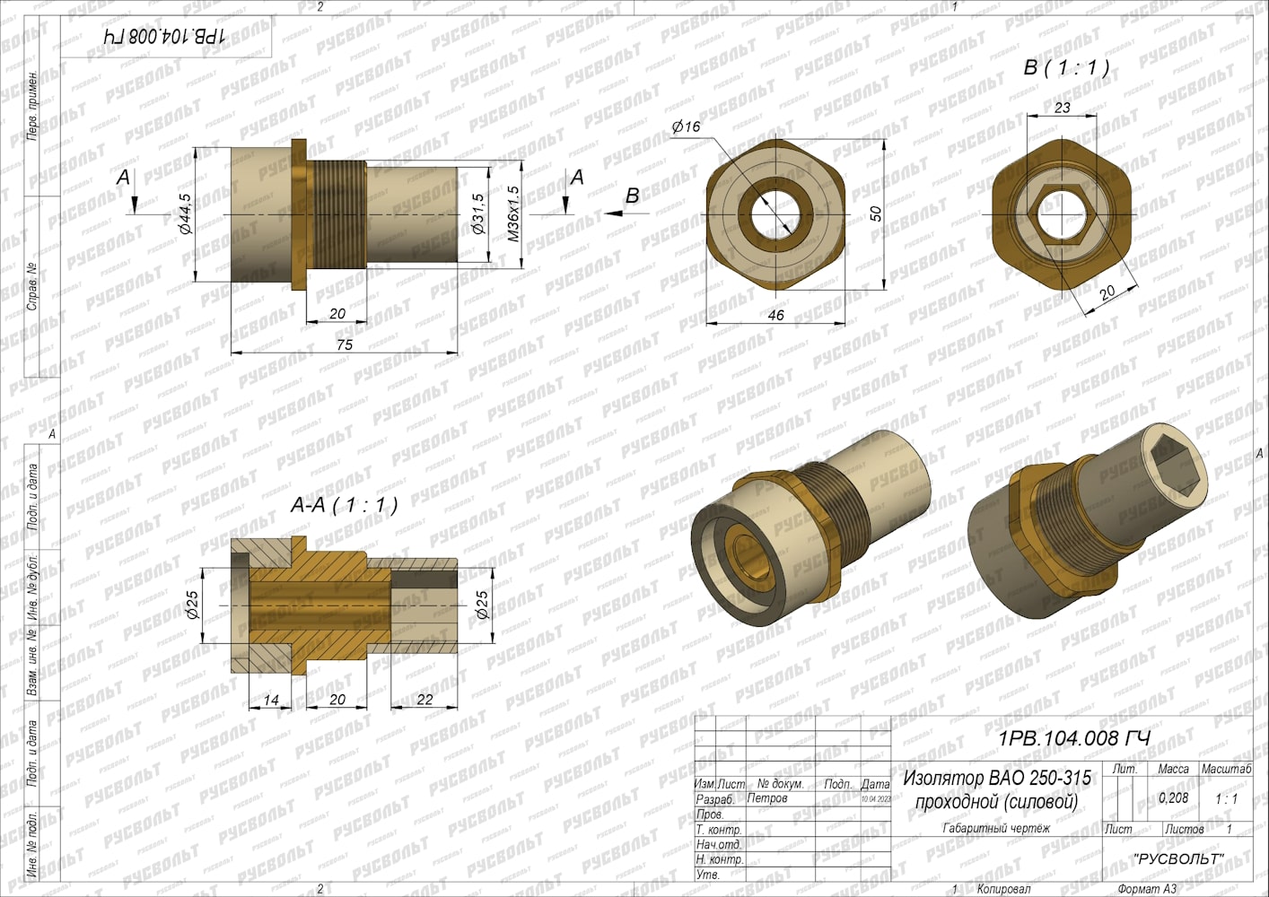 Изолятор проходной ВАО 250-315 - чертеж 1РВ.104.008 ГЧ