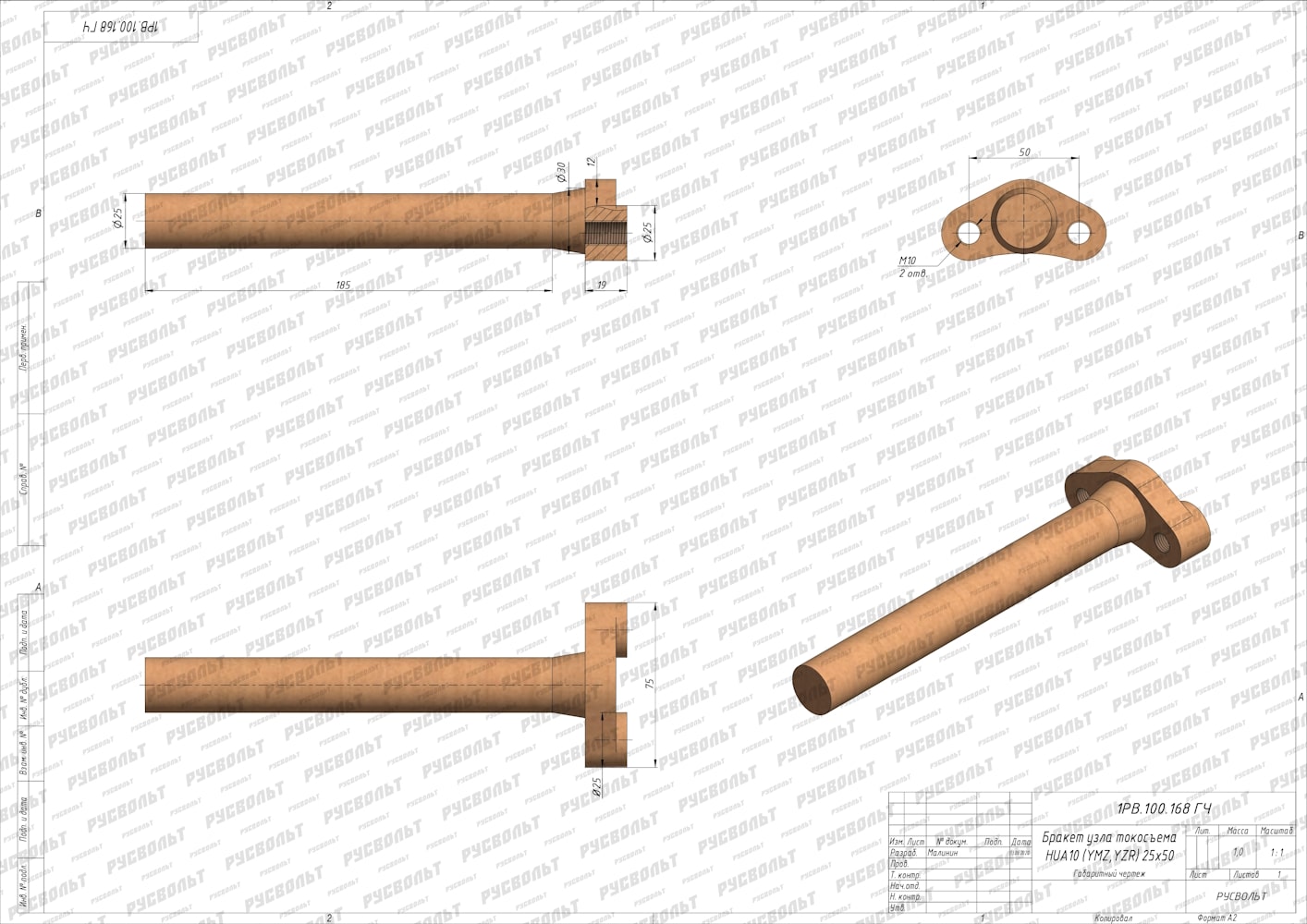 Бракет HUA10 25*50 - чертеж 1РВ.100.168 ГЧ