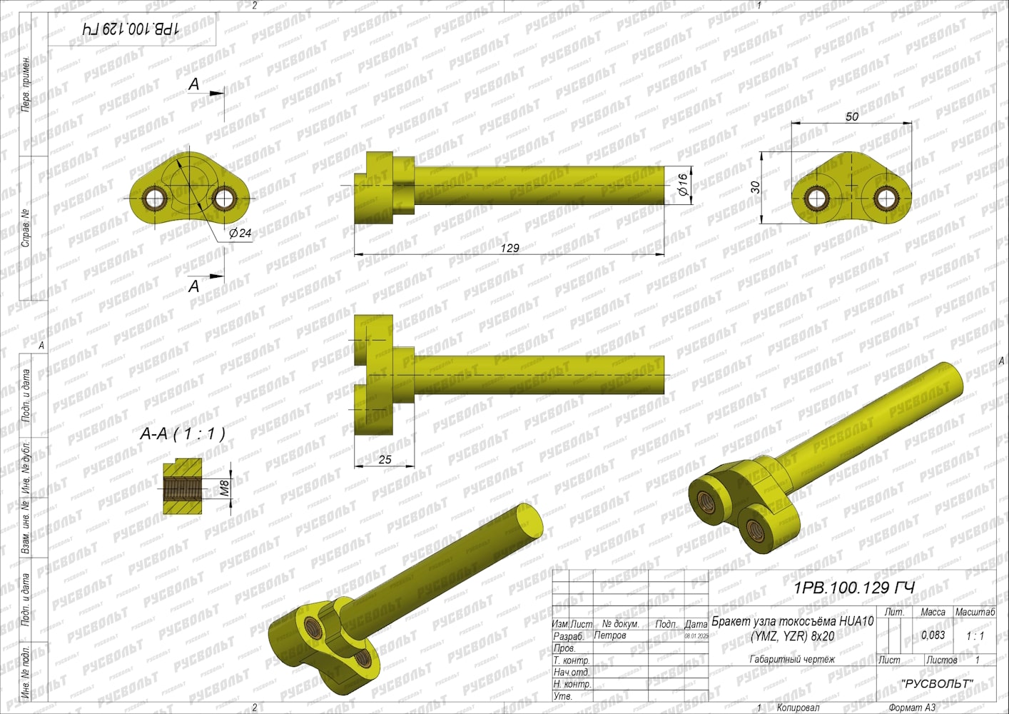 Бракет HUA10 8*20 - чертеж 1РВ.100.129 ГЧ