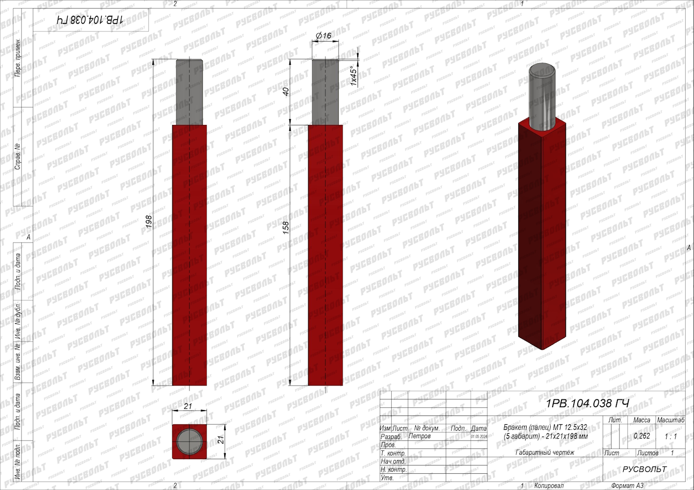 - Размеры бракета: 21х21 мм, L=198 мм;