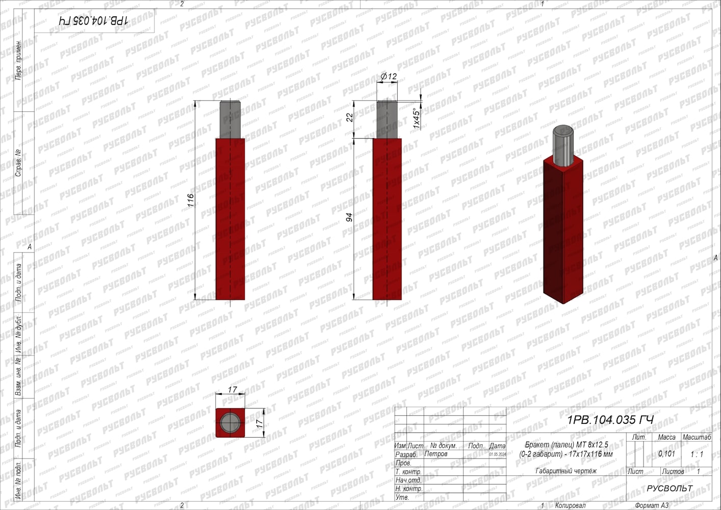 Бракет (траверса) МТ 8*10 или МТ 8*12,5 (0, 1, 2 габарита) - чертеж 1РВ.104.035 ГЧ