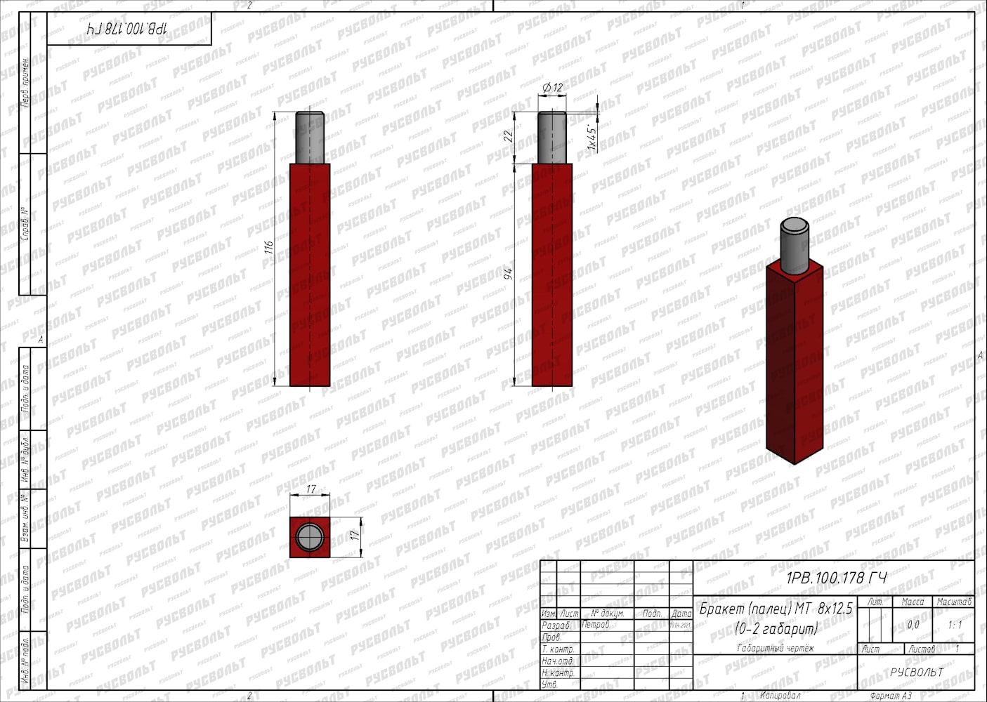 - Размеры бракета: 17х17 мм, L=116 мм;