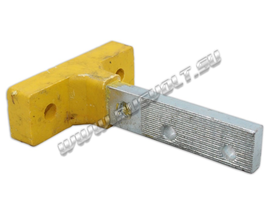 Бракет SOTI-RV2 L=116 мм для иностранных электродвигателей (другие названия палец или траверса) изготавливается из стали или латуни, а изоляционная часть из карболита. На одной траверсе SOTI-RV2 L=116 мм крепится два импортных щеткодержателя типа BRS-RV в каждом из которых установлено по одной электрощетке, которые в свою очередь прилегают к токосъемным кольцам входящим в состав блоков контактных колец. Данный бракет входит в состав различных узлов токосъема электродвигателей.