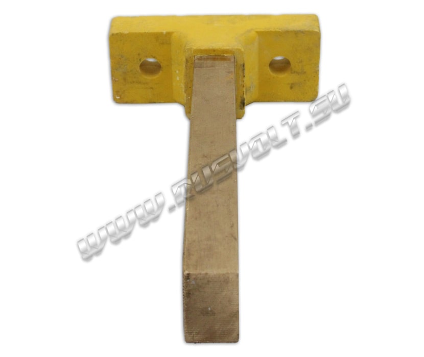 Бракет SOTI-RV3 L=153 мм для иностранных электродвигателей (другие названия палец или траверса) изготавливается из стали или латуни, а изоляционная часть из карболита. На одной траверсе SOTI-RV3 L=153 мм крепится три импортных щеткодержателя типа BRS-RV в каждом из которых установлено по одной электрощетке, которые в свою очередь прилегают к токосъемным кольцам входящим в состав блоков контактных колец. Данный бракет входит в состав различных узлов токосъема электродвигателей.