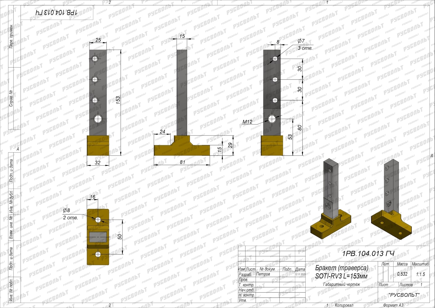 Бракет (траверса) SOTI-RV3 L=153 мм - чертеж 1РВ.104.013 ГЧ