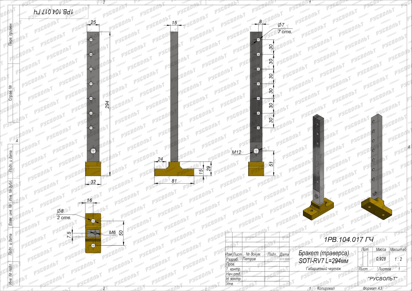 Бракет (траверса) SOTI-RV7 L=294 мм - чертеж 1РВ.104.017 ГЧ