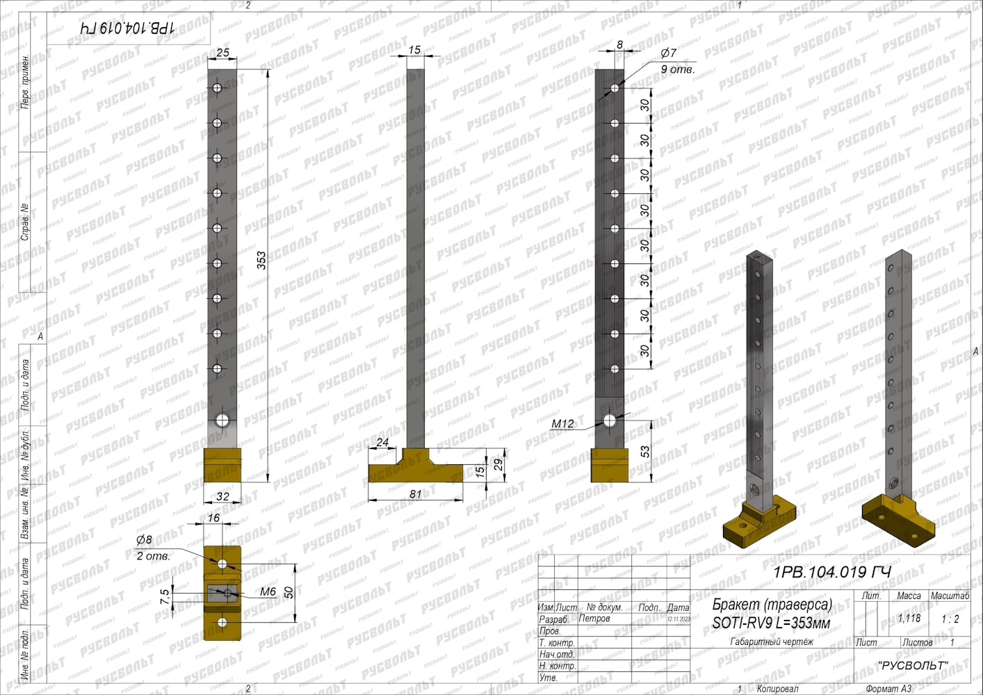 Бракет (траверса) SOTI-RV9 L=353 мм - чертеж 1РВ.104.019 ГЧ
