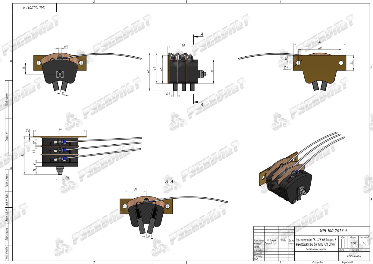Оставить заявку на Узел токосъема (щеткодержатель) ТК-1-2 6,3х8 для тали 1-2 тонн (ф28 мм) тип 1